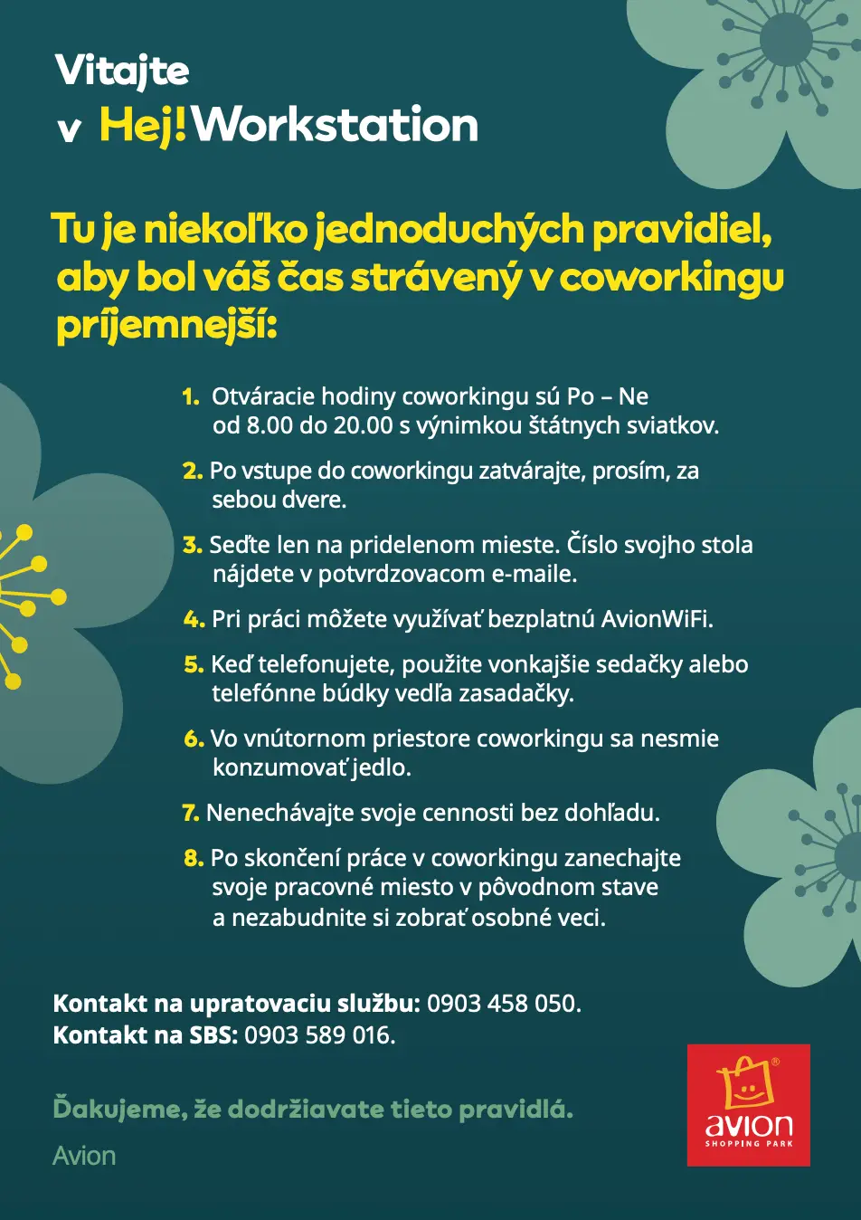 Návštevný poriadok v Hej!Workstation.