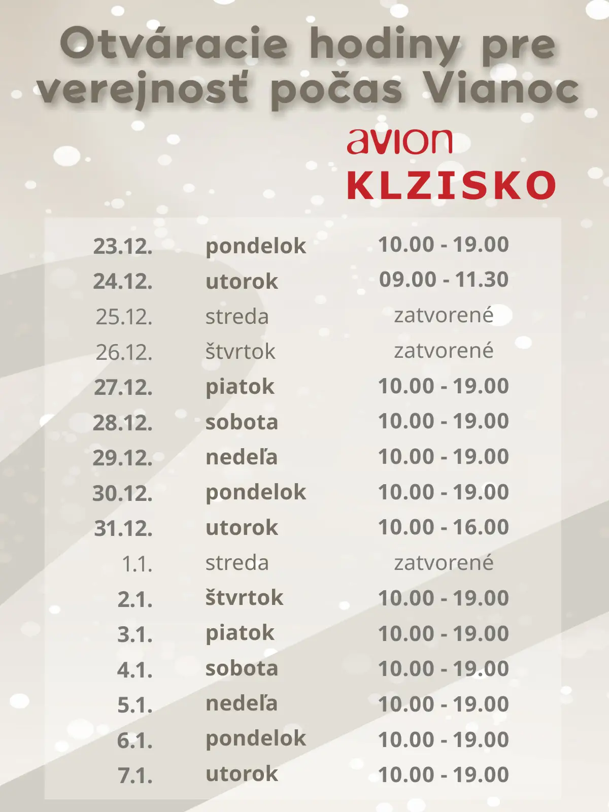 Milí zákazníci, počas vianočných sviatkov budú otváracie hodiny nákupného centra Avion vrátane obchodného domu IKEA nasledovné. 🎄