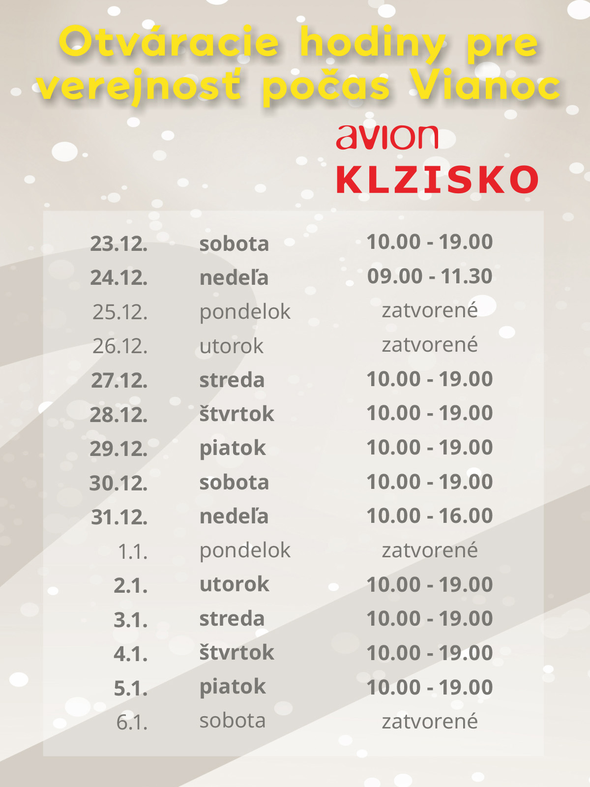 29.12. piatok 10.00 – 19.00