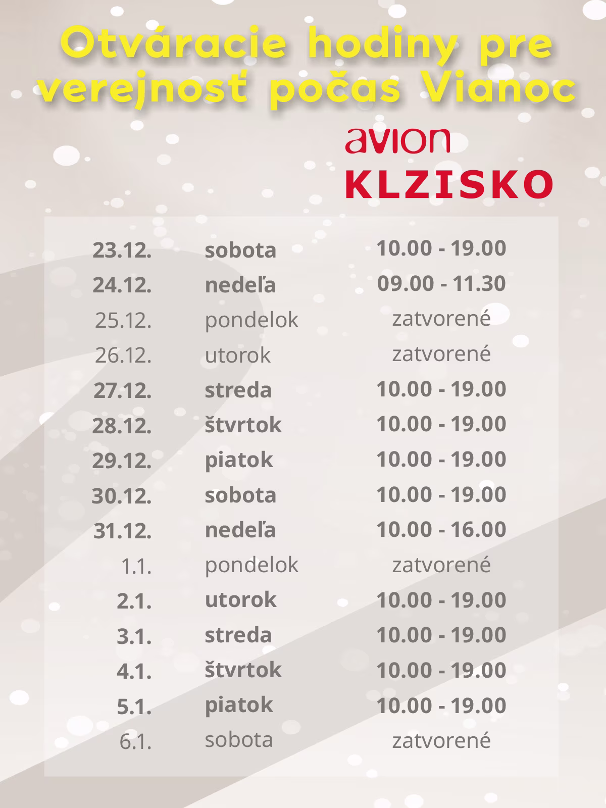 Milí zákazníci, pozrite si prehľad otváracích hodín počas vianočných sviatkov na klzisku.