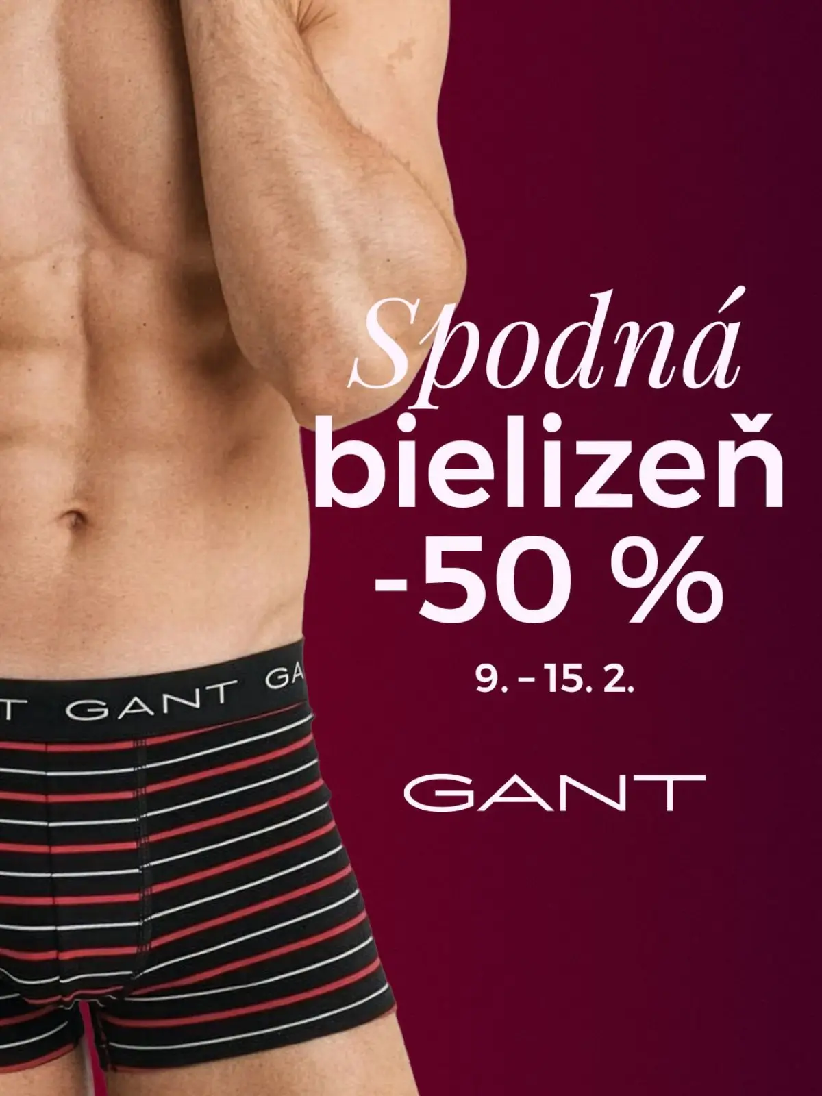 Doprajte si prémiový komfort so spodnou bielizňou GANT. Nadčasový dizajn a kvalitné materiály teraz so zľavou 50%. Ideálna príležitosť osviežiť svoj šatník! Akcia prebieha do 15. 2. v našich predajniach.