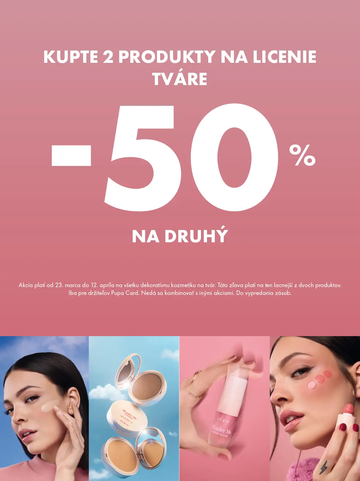 Teraz je ten správny čas vyskúšať viac – druhý produkt na líčenie tváre máš až s 50 % zľavou 💄